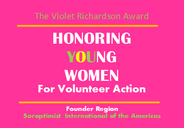 This award is named after Violet Richardson, the first president of the first Soroptimist club in Alameda County, CA in 1921. An award is given to young women ages 14-18 whose volunteer activities make the community and world a better place. This award is first given at the club level followed by submission to district judging for additional awards and recognition.